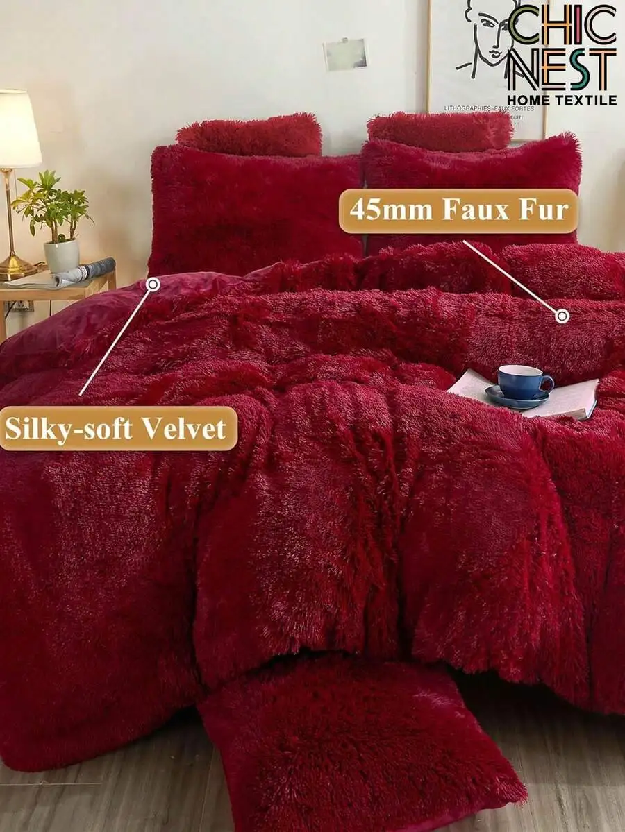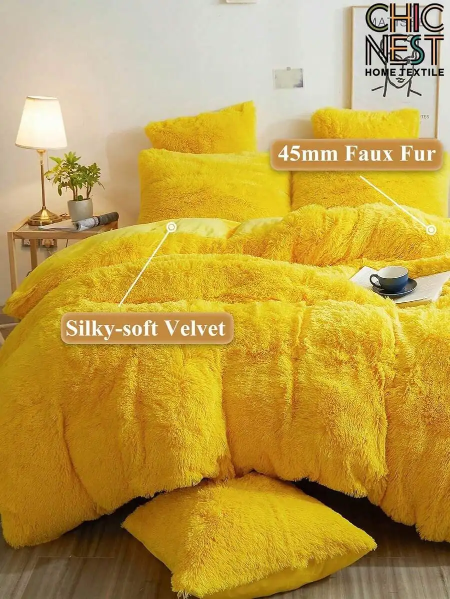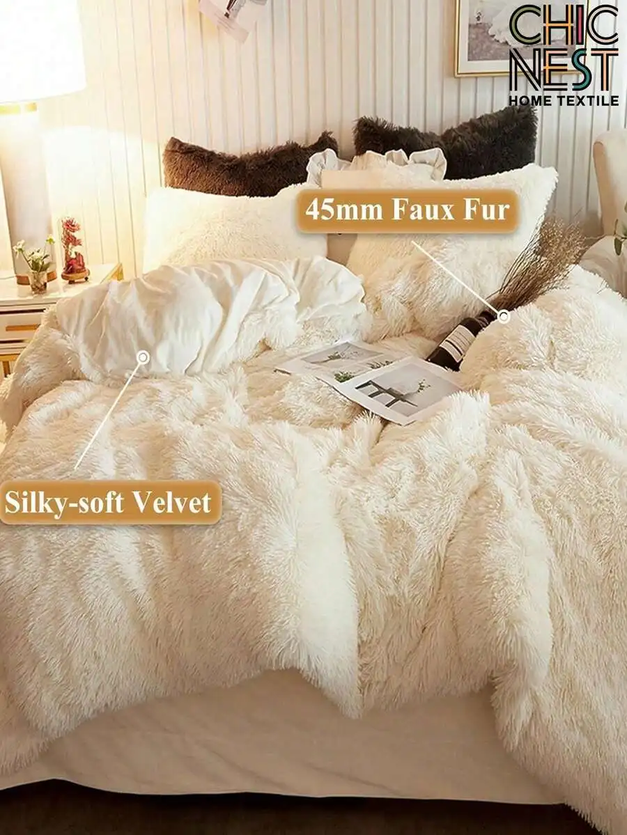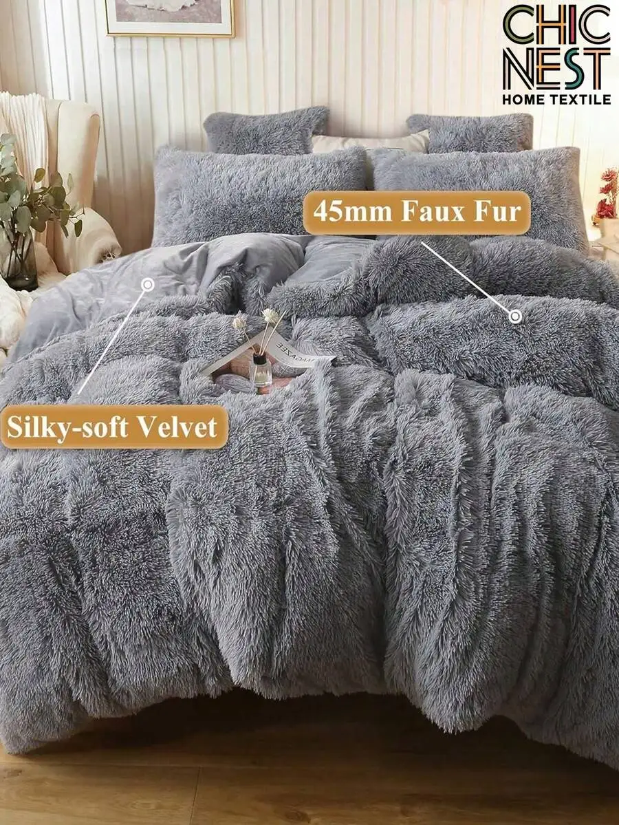 3-Piece Silky-Soft Velvet Faux Fur Bedding Set