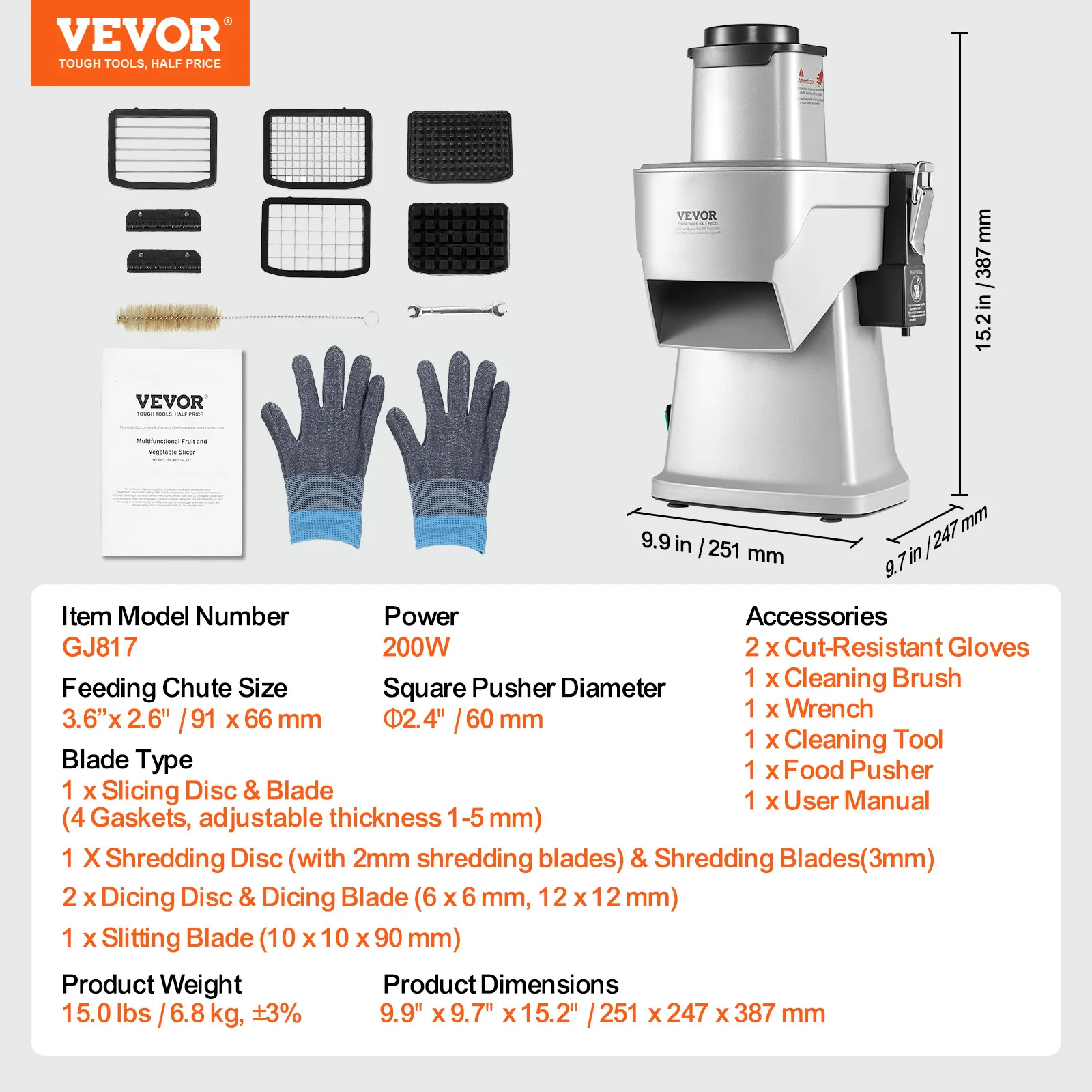 Feeding Chute Size: 3.6" x 2.6" / 91 x 66 mm